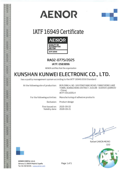 From 3C connectors to automotive and advanced materials, Kunwei keeps growing. Driven by innovation, we aim to be China’s leader in packaging and adhesive solutions, partnering worldwide for a better future.
