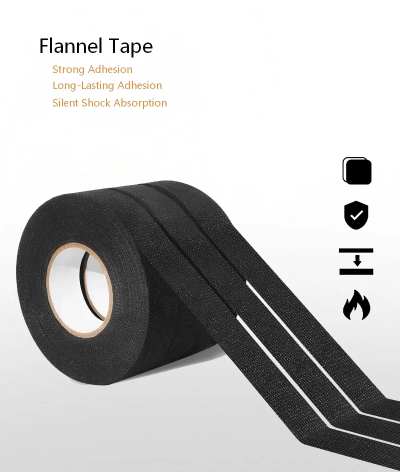 Černá automobilová izolační pásková tkanina z vločkoviny a flanelu s tepelnou odolností na jedné straně nabízí výjimečnou univerzálnost v automobilových aplikacích díky svému jedinečnému provedení a pokročilým materiálovým vlastnostem. Složení z tkaniny vločkoviny poskytuje vynikající tepelnou izolaci, a zároveň zachovává vynikající pružnost při přizpůsobení složitým automobilovým tvarům. Tato speciální páska je vybavena pečlivě navrženým povrchem z flanelu, který zajišťuje optimální odolnost vůči teplu, aniž by byla narušena lepicí účinnost.