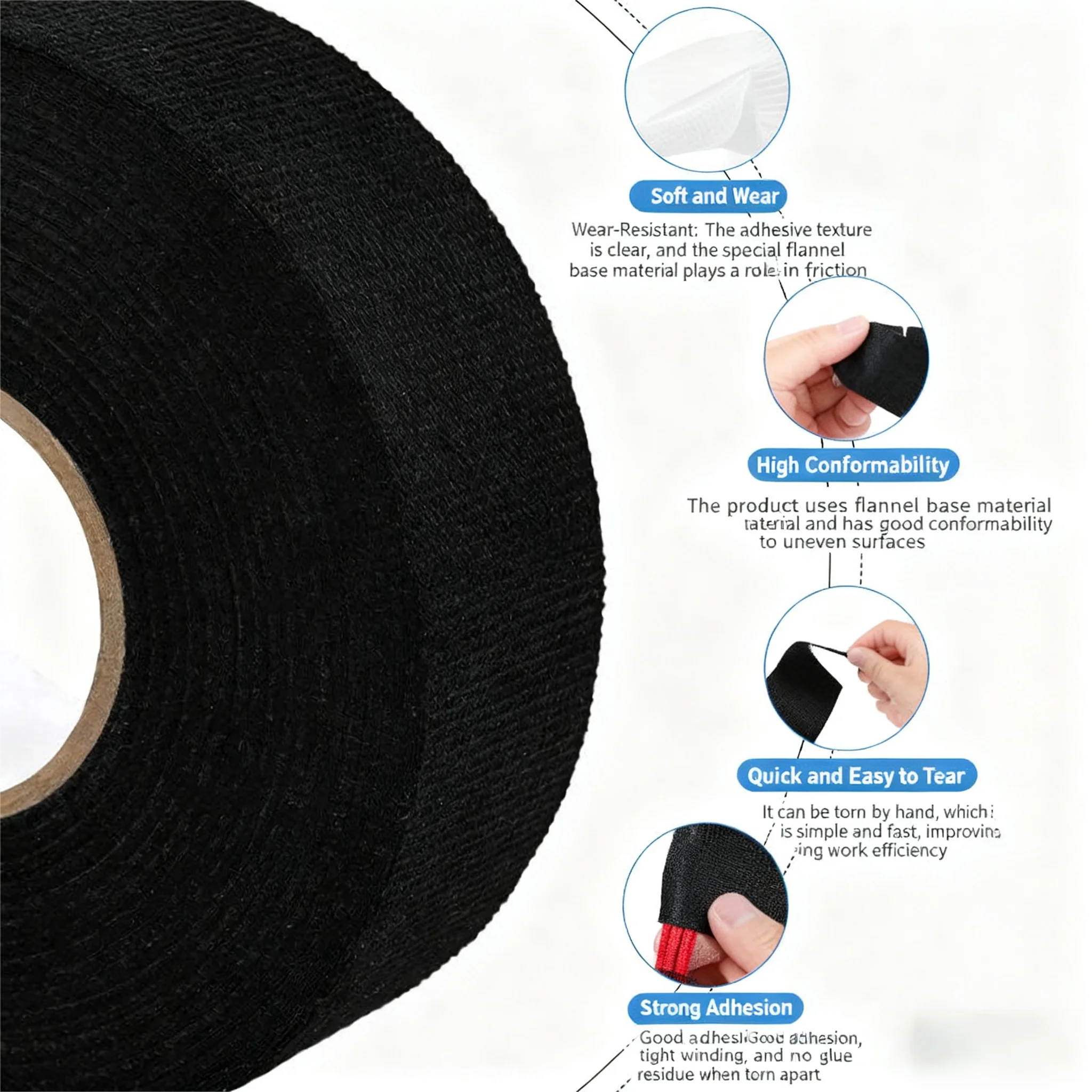 Noise control represents another significant benefit of this specialized tape design, as the flannel material effectively absorbs sound transmission through wire bundles and mounting structures. This acoustic dampening capability contributes to overall vehicle refinement by reducing electrical noise and mechanical rattling that could otherwise compromise the driving experience. Professional automotive manufacturers increasingly value components that contribute to noise, vibration, and harshness reduction while fulfilling their primary protective functions.