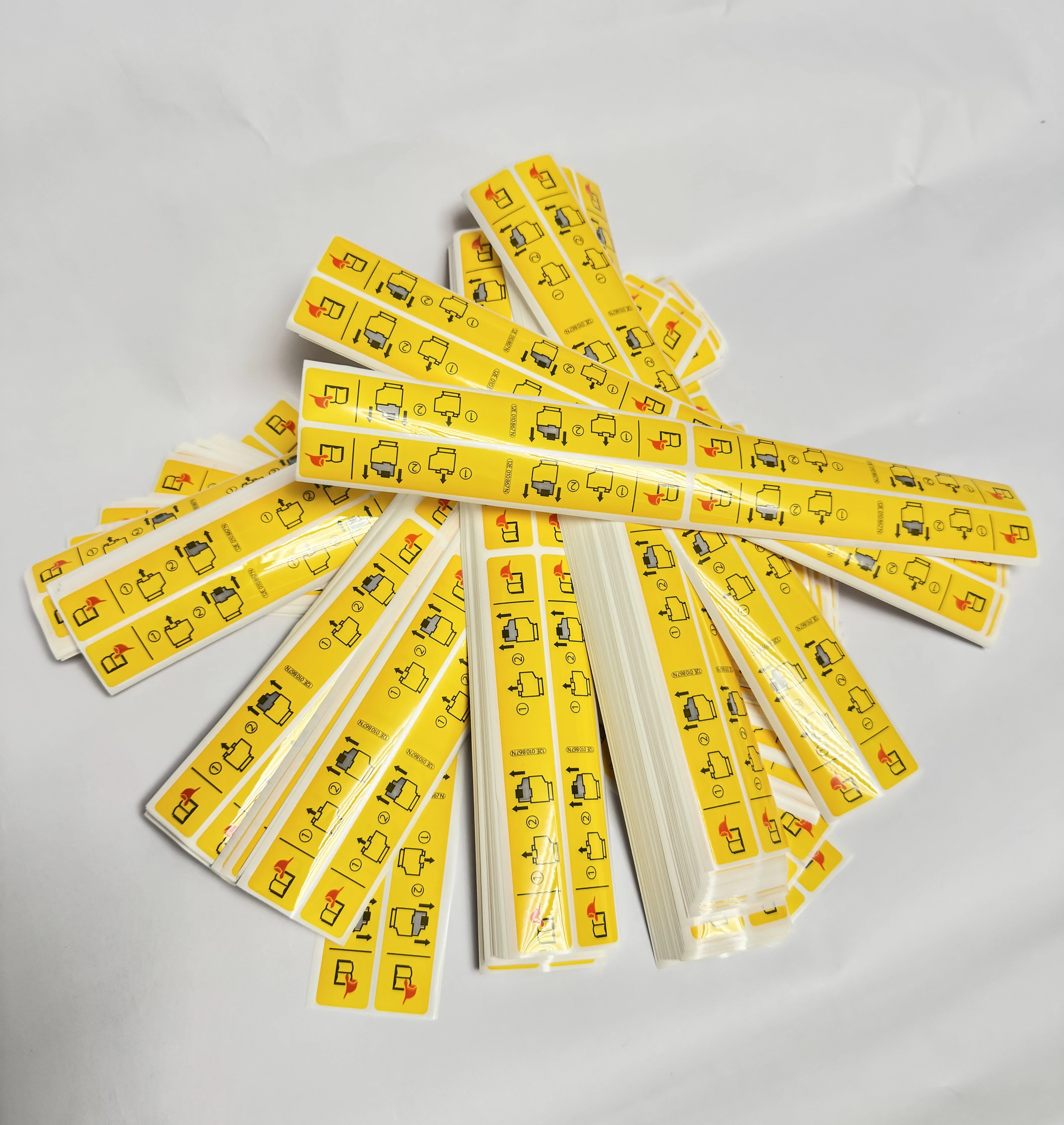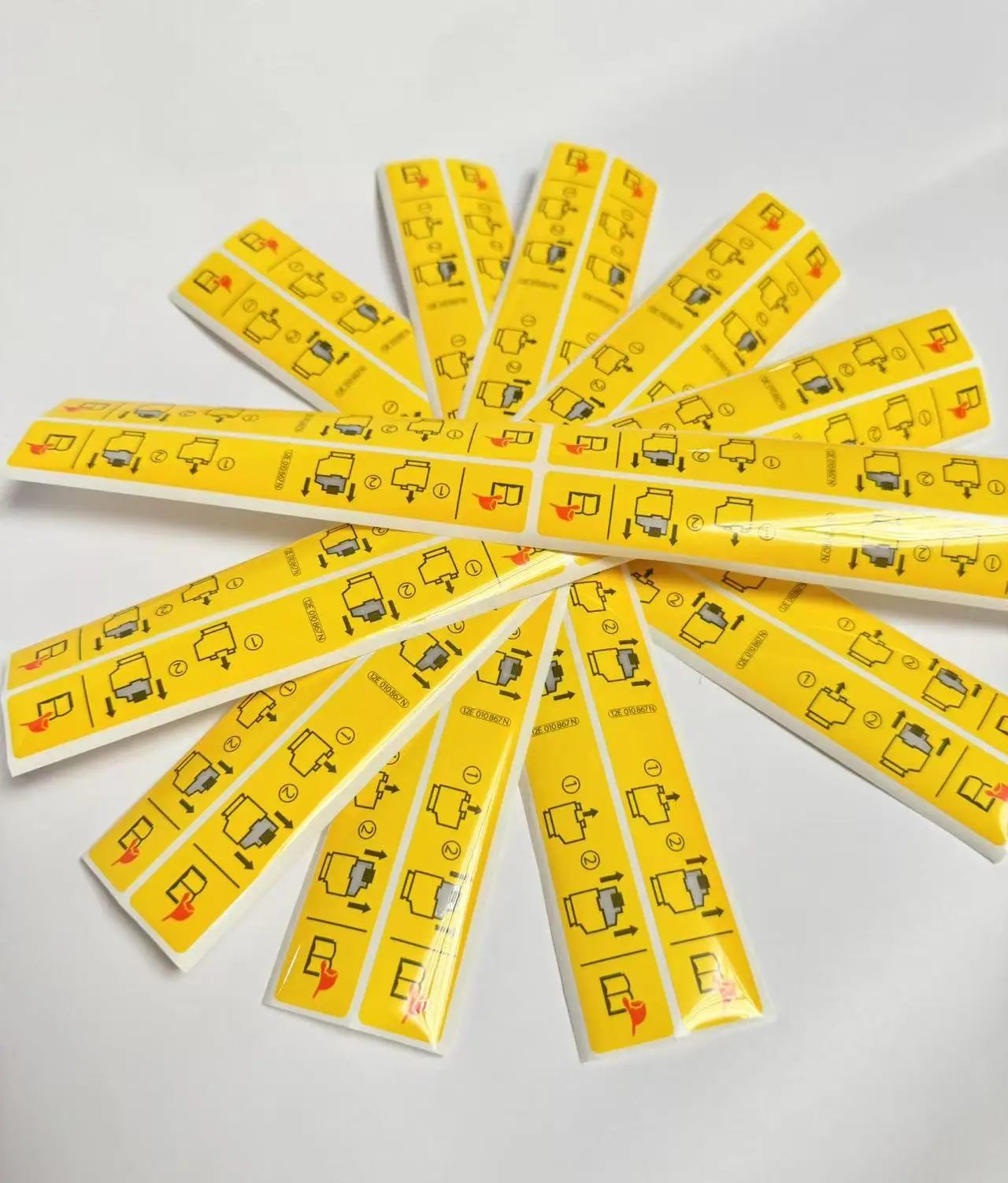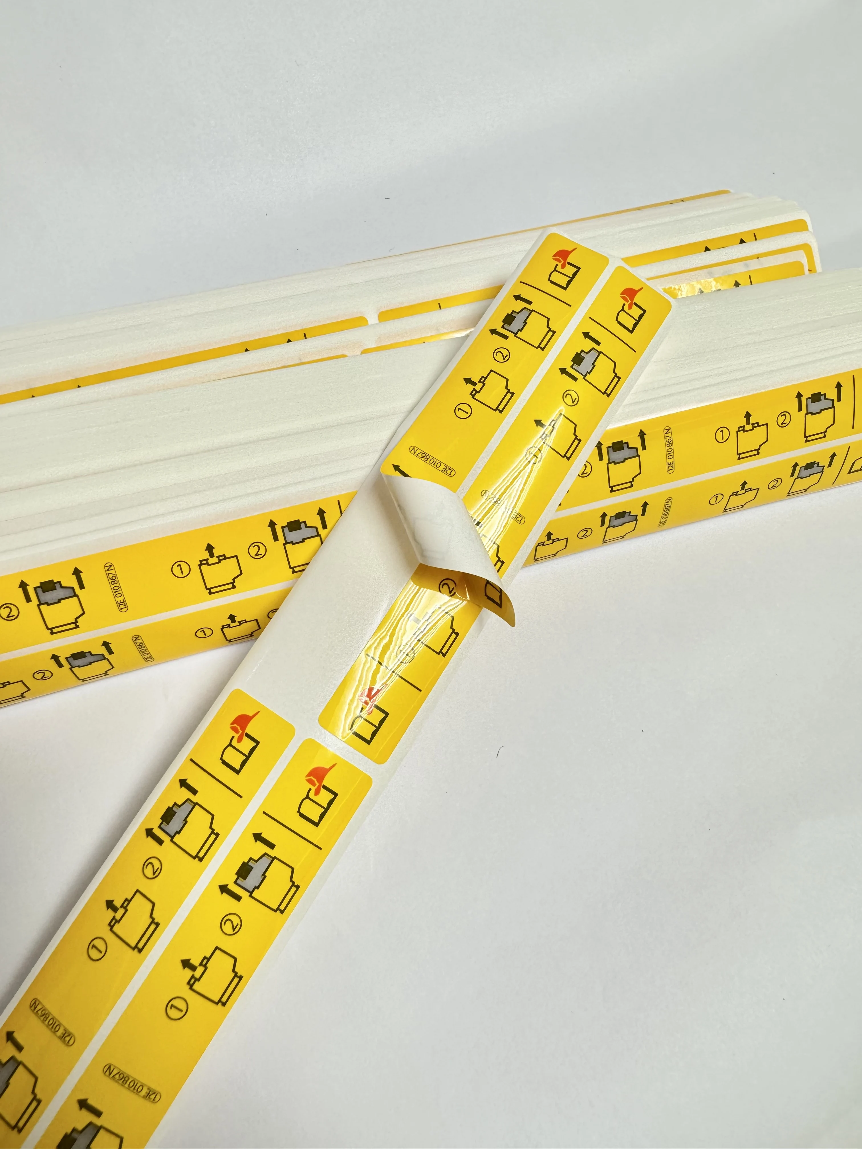 Custom UV-Printed Yellow PVC Vinyl PET Electronic Warning Label Sticker Glossy Strong and Durable Rolled in Carton Packaging