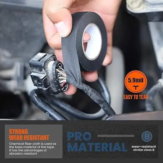 The distinctive black coloration serves both aesthetic and functional purposes, providing excellent UV resistance while maintaining a professional appearance that meets automotive industry standards. The fabric construction ensures optimal breathability, preventing moisture accumulation that could compromise electrical connections while delivering consistent protection against thermal stress and flame exposure. This wrapping material represents years of research and development in protective textile engineering, resulting in a product that exceeds industry expectations for reliability and performance.